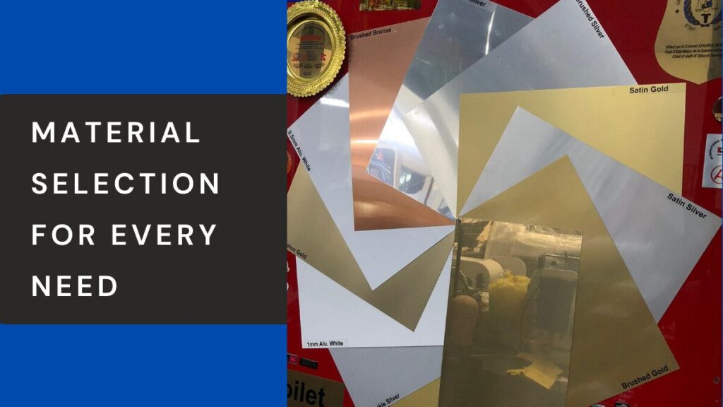 - What materials are available for custom name plates in Dubai?
